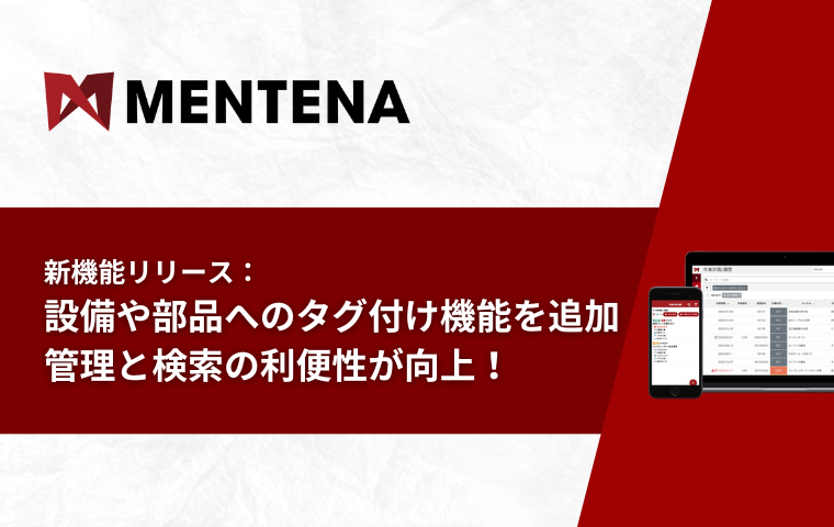 クラウド設備管理システム「MENTENA」、設備や部品へのタグ付け機能を追加